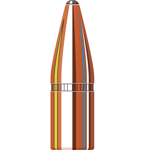 El anillo InterLock® elevado está incrustado en el núcleo de la bala, lo que garantiza que el núcleo y la camisa queden bloqueados en una sola pieza durante la expansión para retener masa y energía.