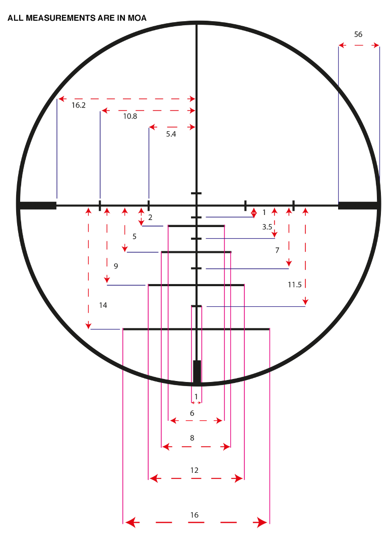 La serie de miras Konuspro con retículo 550 solventa con precisión el problema de compensación en alza y deriva de la trayectoria del proyectil, incluso para largas distancias. Este moderno sistema tiene una doble ventaja: un retículo convencional de fácil uso y la máxima funcionalidad en la variación de la distancia para todos los más comunes calibres. La mira Konuspro con retículo 550 puede ser usada hasta 50-100m con cualquier aumento, pero en el caso de que se quiera usar el retículo balístico con precisión para distancias superiores, se tiene que poner la mira a la máxima potencia. Con el máximo aumento es posible efectuar tiros de precisión desde 100m hasta 550m con distancias intermedias de 50 metros. También existe la posibilidad de confirmar, con las respectivas muescas horizontales el punto de mira para animales en movimiento.