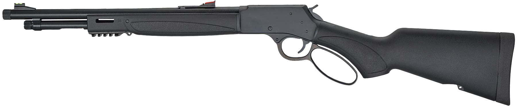 El Big Boy X-Model está repleto de características de alto rendimiento y amplio espacio para añadir aún más. La robusta carcasa sintética está equipada con puntos de montaje integrados para una correa portafusil, una cantonera de goma maciza y ranuras para accesorios Picatinny y M-Lok que facilitan el montaje de las herramientas necesarias para cada tarea. El cañón, similar al de una carabina, está rematado con miras de fibra óptica de alta visibilidad, tanto delanteras como traseras, y la boca del cañón está roscada (paso de rosca de 5/8×24) para admitir un supresor u otro dispositivo de boca. Un protector de rosca atornillable garantiza que la rosca de la boca del cañón se mantenga en perfecto estado.